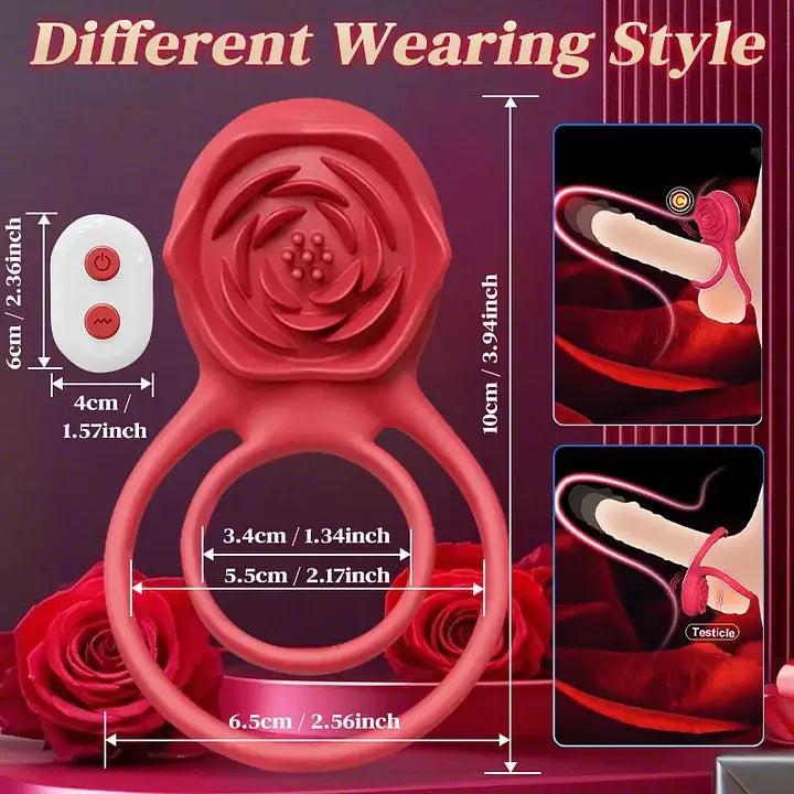Vibrating Cock Ring with Rose Clitoral Stimulator